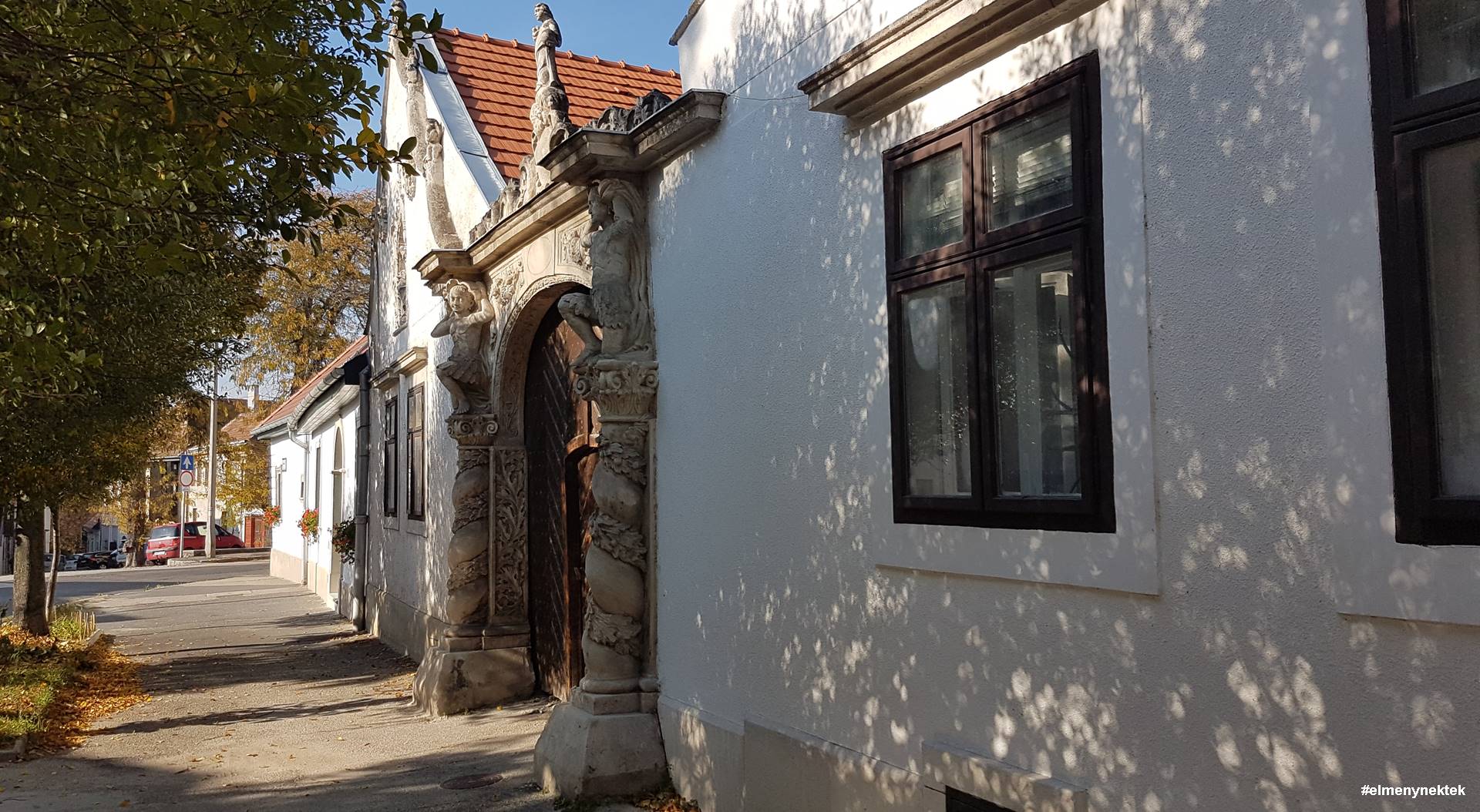 A Két mór-ház népies stílusú barokk díszítésű két épületét egy kapu kapcsolja egymáshoz. A kőkeretes ablakok széleit angyalkák díszítik, s hogy házat ne érje se tűz, se pestis, Szent Flórián és Szent Rókus fejszobrait helyezték föléjük. Az oromzat közepén félköríves fülkében Mária és Szent József szobra áll. A két kis házat összekötő kaput egy-egy csavart korinthoszi oszlop keretezi, rajtuk pedig egy-egy mór tartja a párkányt.