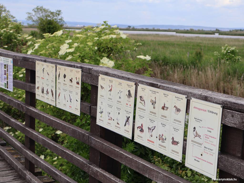 Az útvonalon, a Borsodi-dűlőnél álló madármegfigyelő kilátóból érdemes körbenézni, jó esetben egész madárrajokat láthatunk innen. Nem árt, ha távcső is van nálunk. Talán ez a legnagyobb élmény a tanösvényen. (A kilátónál pihenőpadokat és autók számára parkolót is találunk.) Tovább a tanösvényen a Hansági-főcsatorna mellett elvezető úton is van egy kilátó (Nyéki-kilátó), de ez valószínűleg le van zárva.